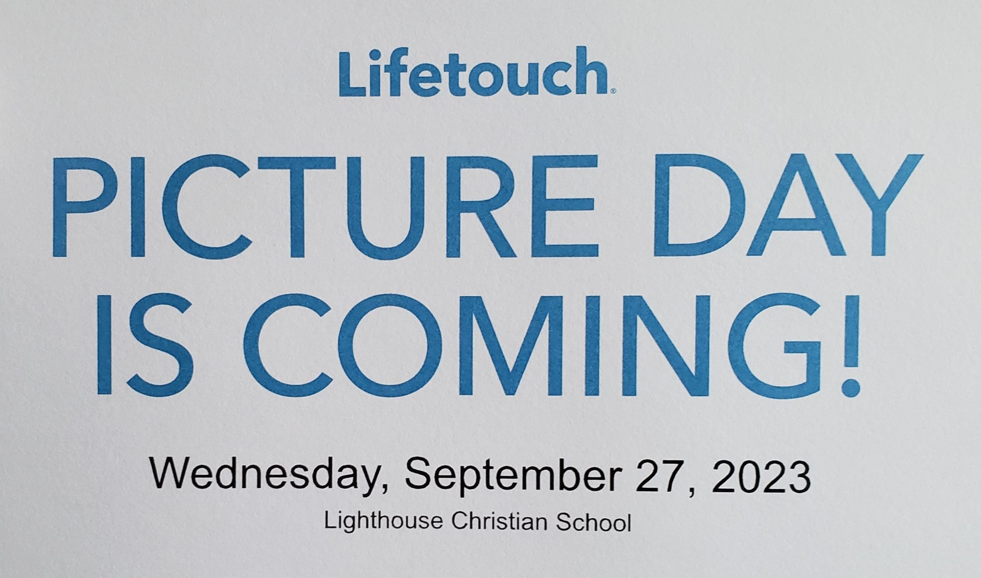 This Wednesday is school picture day! Come with your newest outfit and fanciest hair-do. We will be taking a whole school photo as early as possible after school starts at 8:25, followed by class and individual pictures for all preschool students. If your preschool or kindergarten child does not normally have school at 8:30 on Monday/Wednesdays, be prepared to hang out and wait with them until it is their turn. After the preschool students are done we will move on up through the grades. If you homeschool with Lighthouse and would like to have school pictures done, call the school office and we will be sure to book you a time!